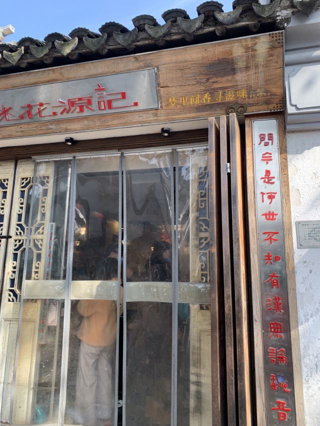 也只有苏州这人间天堂般的“从前慢”才能诞生出精致雅洁的桃花源记,这块招牌在苏州遍地开花,囊括的苏南小吃包罗万象,称为“苏州小吃博物馆”毫不为过。最早爱上他家是因为肥美的醉蟹,后来发现她家 “醉”一切都好,平平无奇的一颗茶蛋,通过醉酿的制法,变得甜润滑香,味道奇佳! 【排队】工作日晚上去,前面有四人在排队; 【环境】整体环境是百花深处的清幽氛围,屋顶上有大竹篾装饰很有地域特色; 【菜品1】 菜品名称:老平江酱鸡脚 价格:¥7 ·酱鸡脚最注重调味的配搭; ·不同于以往的鸡脚,他们家用的是苏南特有的甜酱卤制法; ·用白瓷盘盛上来,分量适中,一个人吃刚好; ·卤好的鸡脚,简单浇些卤汁,外观红油赤酱,口感咸甜适宜; ·要略放一放再吃,能品味到胶原蛋白的口味; 【菜品2】 菜品名称:红豆沙小圆子 价格:¥8 ·圆子最注重食材和汤底; ·不同于以往的圆子,他们家用的是红豆沙打汤底的制法; ·用细瓷碗盛上来,分量适中,一个人吃刚好; ·煮熟的小圆子,盛入红豆沙中,外观白红分明很有意蕴,口感香甜,小圆子有嚼头; ·要把豆沙与圆子蒯在一处一同入口,能品味到两者结合的甜美口味; 【菜品3】 菜品名称:桃源茶香醉蛋 价格:¥2 ·茶蛋最注重汤汁的沁入; ·不同于以往的茶蛋,他们家用的是桃花酿卤制的配方; ·用花瓷盛上来,分量适中,一个人吃刚好; ·香茶花酿共同卤制的茶蛋,经过切瓣后,外观冷艳,入口酒香四溢,美妙的口感无以复加; ·可以配搭鸡脚或大排等肉食一起吃,还能品味到肥美的口味; 【服务】服务员态度尚可,上菜速度很快; 【适合】适合约会或一人食的时候来; 【对比】和其它苏州小吃店相比,她家环境更旖旎,菜品更齐; 【位置】在平江历史街区中段位置; 【交通】打车到平江历史街区步行进入就好; 【优惠】用代金券支付更划算;