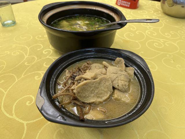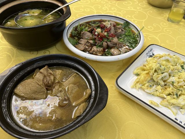 大山里的农家菜 总有一些似曾相识的感觉 因为都不好找 基本都是靠网评跟口口相传吧 这边一个宅院里有两家农家菜 竞争不可谓不激烈 从车开到宅院的那刻起 门口就一直有人盯着 在哪家吃直接决定了你车停哪儿 从停车的情况来看 其实两家生意应该伯仲之间 不会差太多 农家菜嘛 农家风 尤其村里的 基本就是一个调调 两个人 让老板娘给随意配了一下 |红烧大鲳鱼^对 就是那种个头特别大的鱼 十足一整个大盆子 个头大 肉质倒是不柴不木 味道还不错 红烧很入味 拌饭一级棒 |农家草鸡汤^招牌吧 不管人多人少 反正汤得满满一锅 土鸡嚒 那个鲜啊 黄黄一层油 漂出一阵香 老狼爱吃鸡的既视感 有木有 鸡肉炖的很酥嫩 口感不错 |盐水太湖白虾^最普通 最家常 最本味的吃法 应该也是最合时宜 最能品出食材本身鲜味的吃法 综评 农家菜就是来吃个味道 环境啥的都是其次 从口味上来说 还不错 价格也不贵 菜都很下饭 推荐了