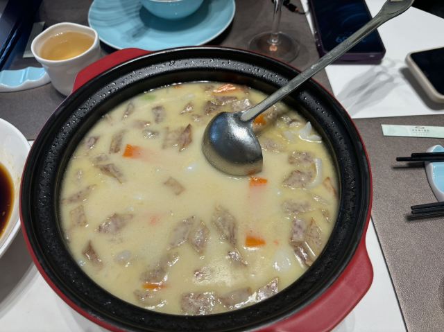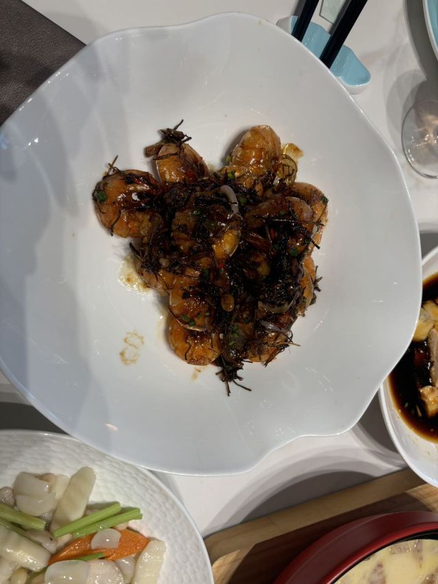 五星级饭店里的中餐厅,环境真心赞,明亮干净,用餐氛围还不错。这边商务宴请的客人较多,有包厢,但有最低消费。菜很精致,色香味俱全,酒水也挺丰富的。虽然价格小贵,份量足,味道也赞。