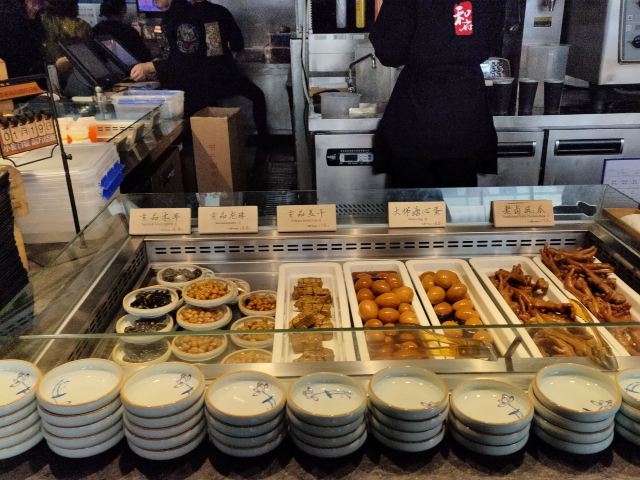 旅游度假和府捞面在苏州有几家分店,这家在观前商圈内的美食街碧凤坊。和传统面店不一样,和府捞面有他自己的风格,摆设有点书香文化的味道。除了捞面,好有好多江南小吃。