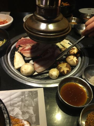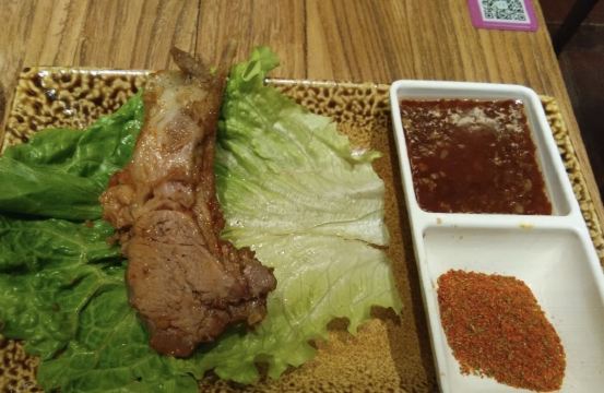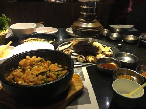 一家提供韩国料理的餐厅,餐前小菜种类多样,非常开胃,吃完还可以免费续盘。招牌的海鲜饼、调味牛五花几乎是每桌必点。伴着微微的炭火,三五好友喝着暖暖的小酒,看着星火从烤盘上一点点蹦跳,不禁感叹生活也可以如此惬意啊!
