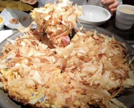 海鲜饼,虾仁挺大的,味道鲜美,热热乎乎的吃,超香的,海鲜年糕,缓缓入口,辣辣的,年糕很弹性,烤五花肉,肥肉相间,香脆可口,越焦越好吃