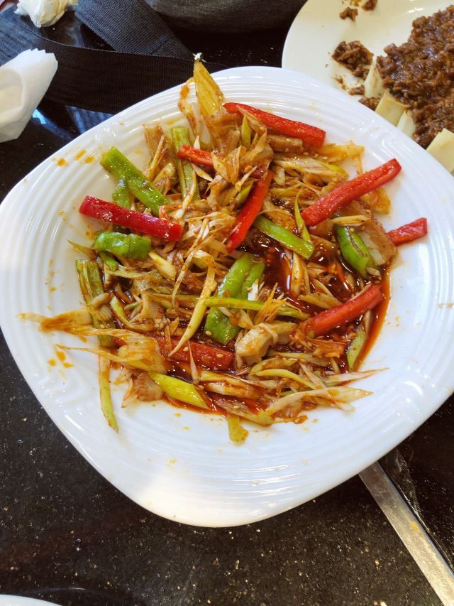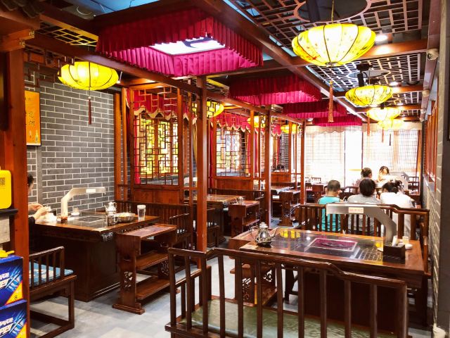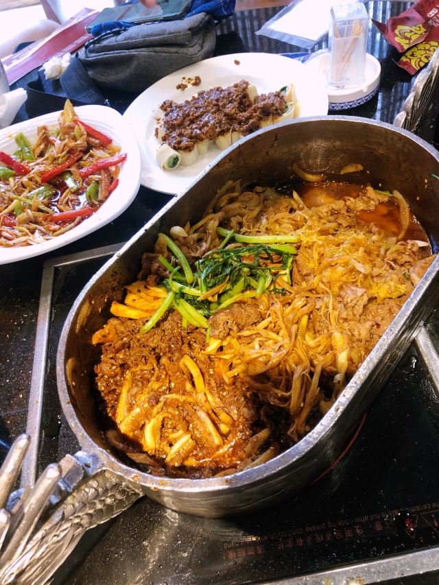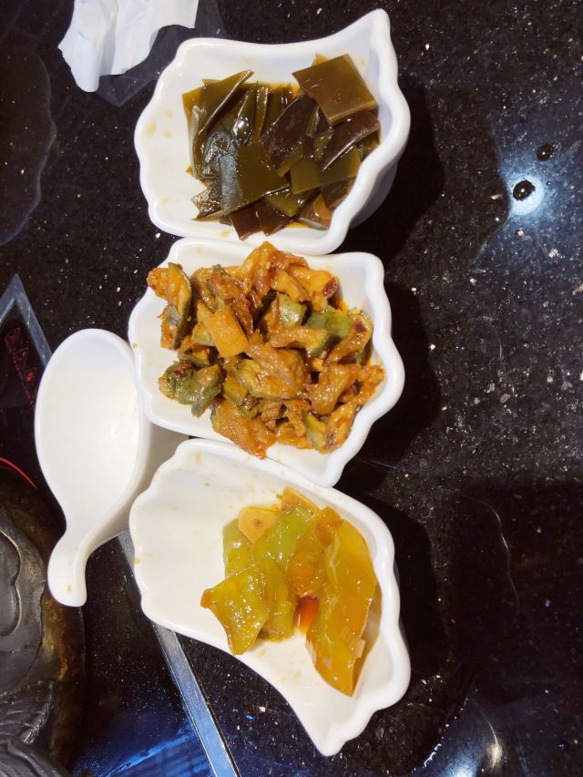 店里面是中式装修一层大厅,二层有包间。 肉锅很特别银色龙头。赠送的小菜味道酸甜可口。还点了一个豆皮上面放了一层炸酱的菜,这个菜的酱香味特别的浓厚。 整体菜口味重了一些。这是北方菜的特点吧。