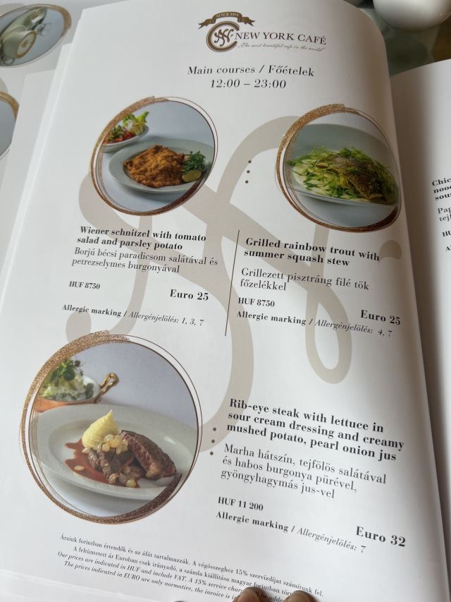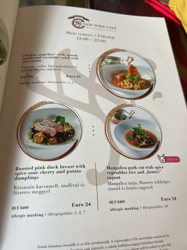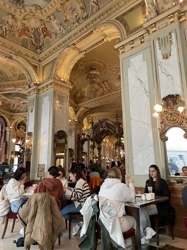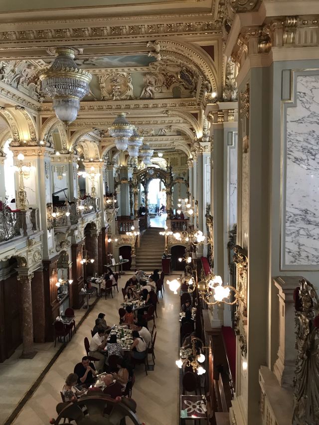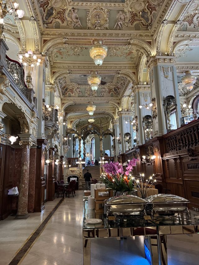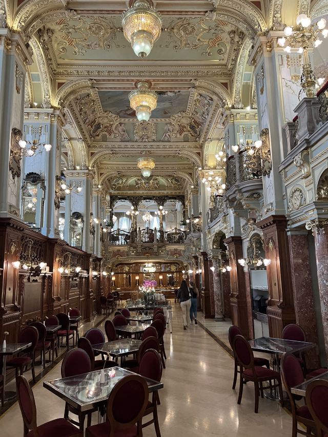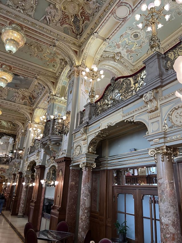 这是家拥有100多年历史的咖啡厅,举世闻名。店内的装潢非常华丽,可与皇宫相媲美,是20世纪布达佩斯最美丽的咖啡店。服务员非常热情,会给你推荐店内的特色。咖啡厅提供咖啡、甜品,还有一些简餐,价格不贵,非常推荐。
