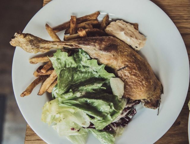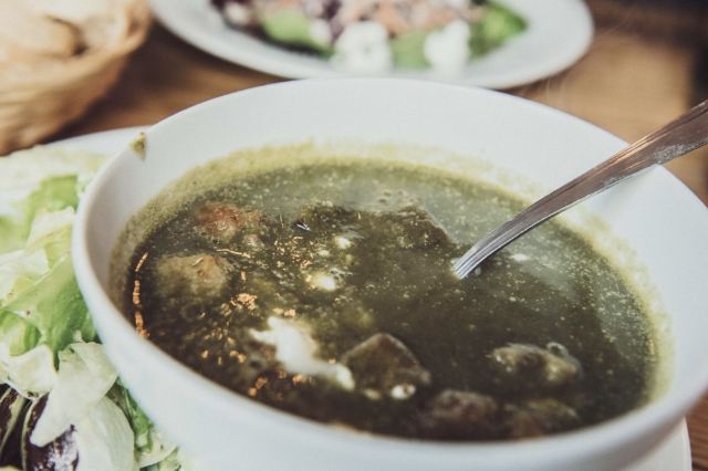 这次约了朋友跑去吃了顿午餐简餐。 奶油菠菜汤,大概就喝了1/3,里面放着的脆面包块倒是可口,但汤整体的味道真的不咋地。 烤鸡腿配自制薯条,鸡腿还算不错,自制薯条水准正常。 紫甘蓝色拉,配了胡萝卜,苹果和羊奶酪,里面加了孜然,倒是把这个紫甘蓝本身的味道给掩盖住了,朋友很喜欢。 鲽鱼鱼片,感觉鱼片就水煮一下,然后配上些咸味脆块和小扁豆,真的欣赏不起来这道。 意式浓缩用的是coffee circle的豆子,不错。 还有饮料,朋友点了个抹茶水,瓶装的,朋友说口味真的就是抹茶粉+薄荷+气泡水... 总体感觉这家的菜,一半不错,一半有点莫名。布达佩斯好吃的简餐餐馆实在是太多了,按照水准感觉还需要再观望观望,先不放在推荐标签里了,等下次有机会去试了brunch了再来评价。