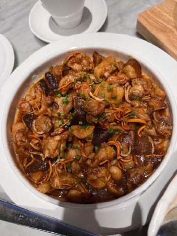 新密虾尾,北京片皮鸭,海皇粉丝煲,黑椒牛肋排,意境山葵大明虾,鲍鱼红烧肉,河南特色大烩菜,蛋白芙蓉虾球,吵嘴牛蛙,黑椒珍菌牛肉粒