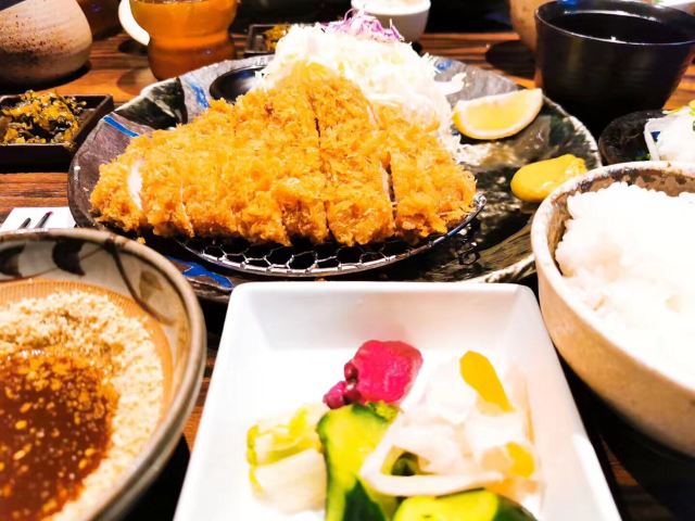 熊本非常网红的猪排饭,进门拿号,排队时间还好,点了最贵的一套猪排饭,上菜略慢,但值得等待,猪排特别酥脆,肉非常嫩,配的雪菜小菜都很好吃的,非常值得打卡,点了本地的一种冰清酒,非常爽口利落,搭配猪排很解腻