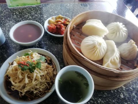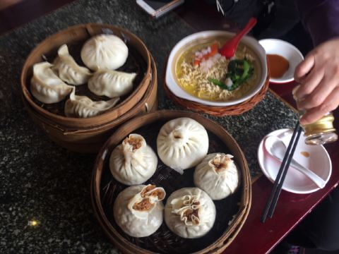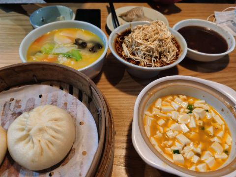 #幸福日常分享~ #城市生活地图 来扬州还是得尝尝当地的美食。这家冶春茶社可是老字号了,以包子著称。自助扫码下单就可以。蟹黄汤包是一定要吃的,配上葱丝和吸管。小吸管插进去先吸满满的蟹黄汤汁,很有满足感。蒸饺也不错个头不小。再配上滑美的汤羹,不错不错。