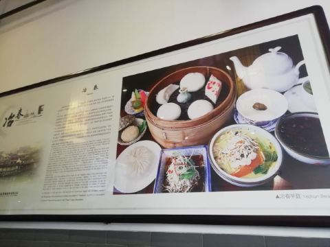 五丁包,蟹黄包,赤豆小元宵,狮子头,烫干丝,豆浆,大煮干丝,松子烧卖,冶春蒸饺,赤豆元宵,千层油糕,冶春肴肉,蟹粉狮子头,扬州炒饭,绿杨春茶,杂什小笼