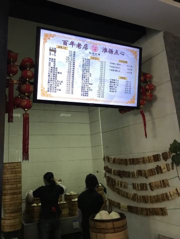 烫干丝,小翡翠烧卖,蟹黄大汤包,小馄饨,三丁包子,阳春面,扬州炒饭,大煮干丝,小混沌,豆腐皮包子,月牙蒸饺,小笼汤包,豆腐竹包,干拌面,松子烧卖,乌米烧卖,蒸饺