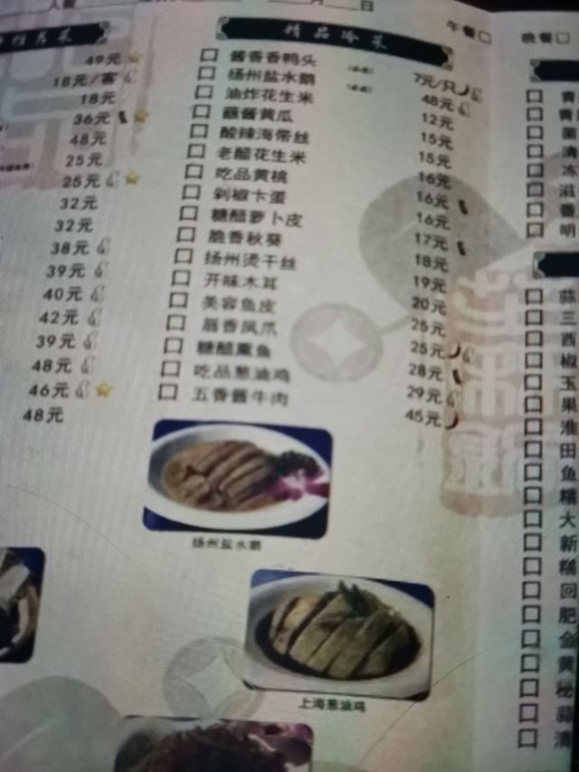 吃品金丝肉,狮子头,扬州炒饭,肥肠臭大元,蛋黄锅巴大虾,菌菇臭大元,扬州盐水鹅,蛋黄锅巴,培根茶树菇,肥牛臭,果味咕咾肉,吃品干丝煲,川湘拆骨肉,文思豆腐,蒜泥拆骨肉,肥牛臭大元