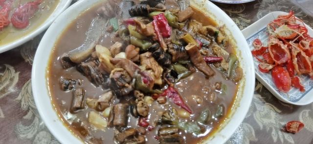Chi Pin ZhiMa Guo (TaiZhou Road)臭大元其实闻起来也不臭,大肠处理的很干净,豆腐有一点点卤的香辛料的味道和清香,感觉这股清香还挺好吃的。狮子头吃不出猪肉的腥味,口感很棒,狮子头的汤也很好吃,但是这种清淡口感容易让人吃出一点点腻,属于能够接受的那种,第一次来扬州出差选的餐厅味道还不错的啊,就是餐具有点点不太干净,不过问题不大。