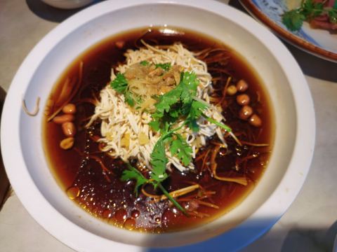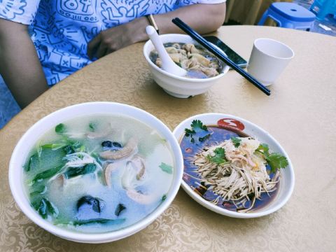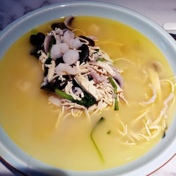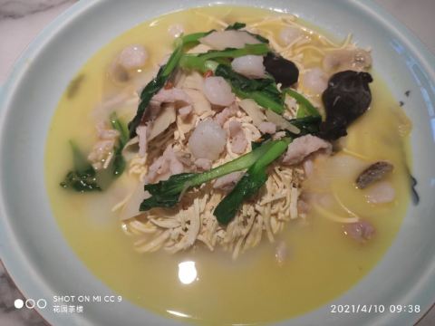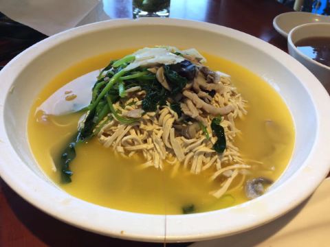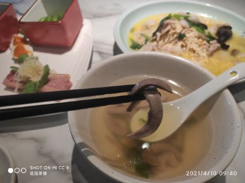 花园茶楼应该是扬州早茶的后期之秀,位于扬州兴城西路,点的比较有名的小烫干丝、腰花汤和五丁包,先上的腰花汤,有点香菜,猪腰子量也还行,吃到嘴里比较爽滑,汤略微有点咸,烫干丝以前没见过,头一次吃,看用料比较讲究,最上面是海米,然后下面铺了一层姜丝,姜丝下面是榨菜末,然后是香菜,香菜下面还有几个花生碎,总体味道比较鲜咸,五丁包,用料很不错,参丁、鸡丁、笋丁还有肉丁,剩下一种没尝出来他家总体味道还不错,就是价格有点贵。头一次来扬州的小伙伴可以来着品尝一下扬州早茶