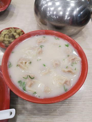 江都的老字号茶社,早上六点不到就营业了,蒸饺非常好吃,鱼汤面和馄饨要多放一些胡椒粉,否则会腥气的,价格非常实惠,三丁包做的也不错,很地道。 自带茶叶,开水无限量供应。 当地人去的很多。