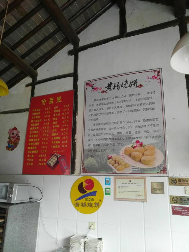 黄桥烧饼,胡辣汤,豆腐脑,梅干菜烧饼,豆花,椒盐烧饼,桂花烧饼,芝麻烧饼,馄炖,蟹黄烧饼