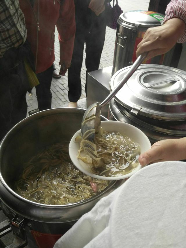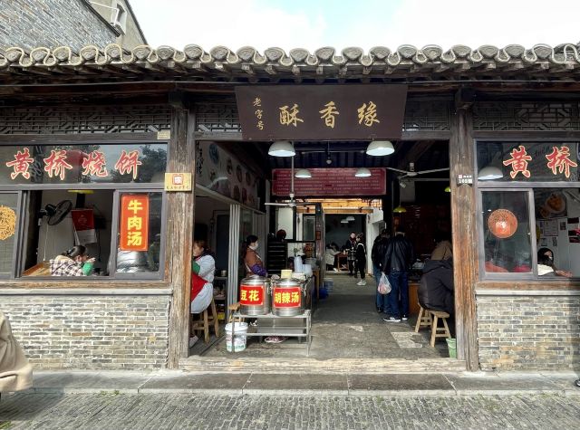 位于扬州东关街上的酥香缘,也是在东关街上的老字号。通过他的名字,你就可以想得出来,他主要卖的是因酥软又香而结缘的东西。没错,他们家主要卖的就是黄桥烧饼,当然还会搭配着卖豆腐脑以及胡辣汤。江南的胡辣汤可真的不能想和北方的比,个人感觉不仅没有西安的胡辣汤好喝,比起河南的胡辣汤还差的远的多