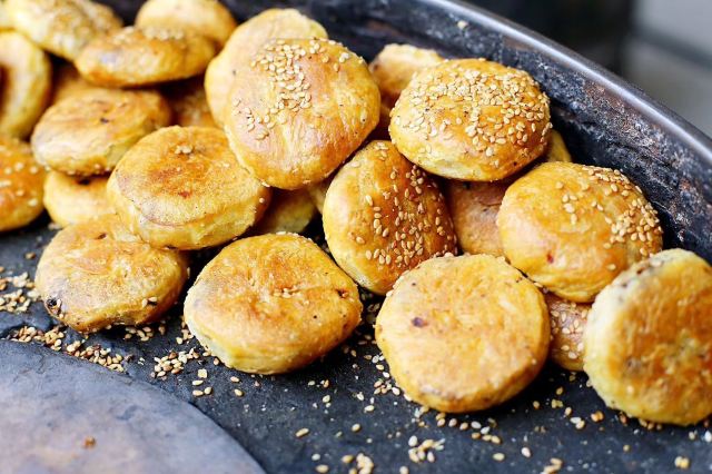 扬州皮市街的端荣烧饼,甜的我很喜欢,当地人喜欢梅干菜馅儿,还有油炸糯米,咸口我不太喜欢,我还是喜欢吃点甜的,价格实惠生意不错。