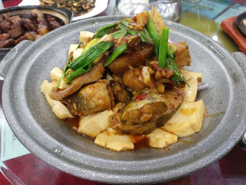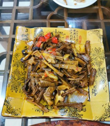来黄山风景区,晚上到达汤口镇,吃的这家菜,徽州特色餐饮,有石锅臭桂鱼,石耳炒鸡蛋,农家肉等,比较在旅游景点,个人感觉徽菜做的西般!