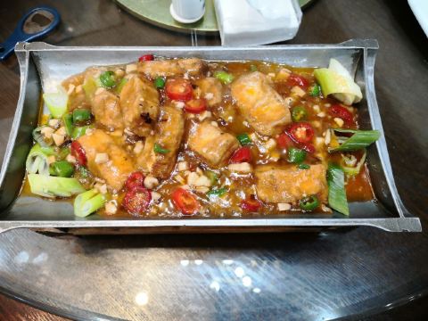 很有徽派建筑特色的一家本地菜馆,位于黄山脚下,招牌菜徽式臭鳜鱼味道正宗,色香味俱全,值得推荐。