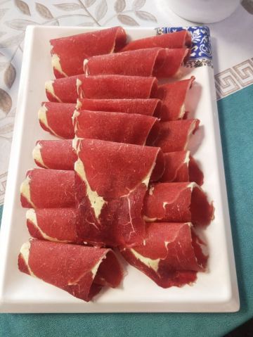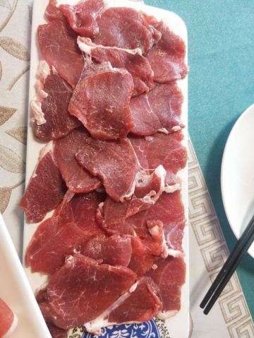 到达阿尔山市第一天晚上宾馆老板推荐的火锅店,距离入住酒店很近。 点了两盘羊肉一盘牛肉,不得不说内蒙的牛羊肉确实很嫩,口感非常不错,尤其是老板推荐的西旗羊肉口感最棒,非常推荐。 蔬菜拼盘分量很足,种类丰富。 最后感谢老板赠送的一盘羊肉。 看了一下其他人的评价,很奇怪,为什么大家都是吃的烧烤类的,不明白为什么,也许前几年是烧烤店。