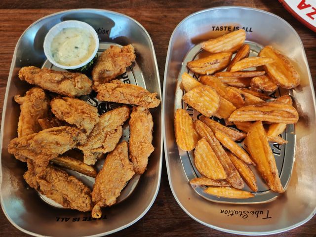 旅游度假位置就在省府前街步行街中部,比邻芙蓉街,环境清幽,适合打卡拍照。店内是简易工业风,比较宽敞。 四个人不知天高地厚的点了32寸披萨,吃不完,根本吃不完,建议至少六人以上吃。披萨味道不错,十种口味当中选四种,可惜没有榴莲口味。小食味道一般,中规中矩。晚上9点半就清客打烊,有点小遗憾。