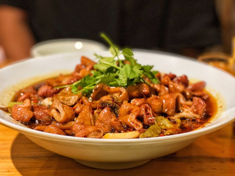三姐肥肠鱼,兔腿,清炒豌豆尖,蜀香脑花,肥肠鱼里加肥肠,炝炒丝瓜尖,肝腰合炒,蜀香勾魂鸭头,椒艳霸王蛙,粽叶糯米糕,香辣兔头,琥珀豌豆,水煮牛肉,香辣豆干,杨梅酒