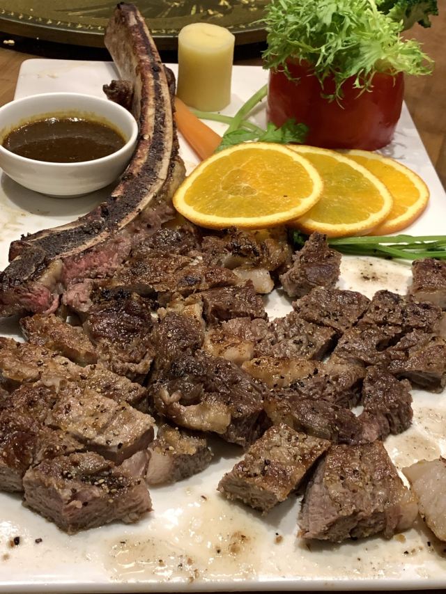 烟雨蒙蒙细雨飘飘法式烤牛舌,色香味俱全,很嫩口,煎鳕鱼,香喷喷的,鱼肉鲜嫩,口感不错,主厨牛排,鲜嫩多汁,肉香肥美