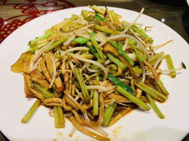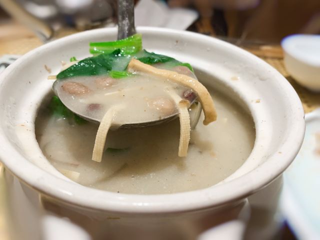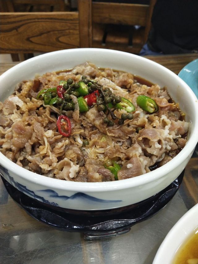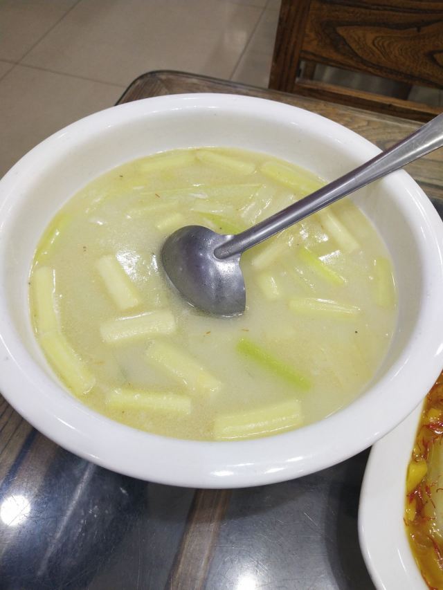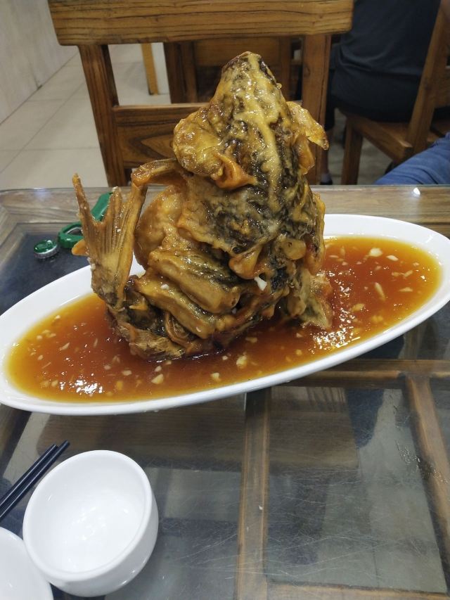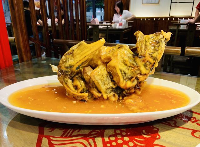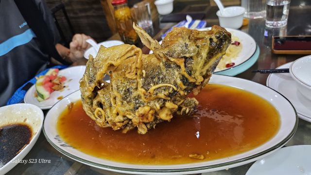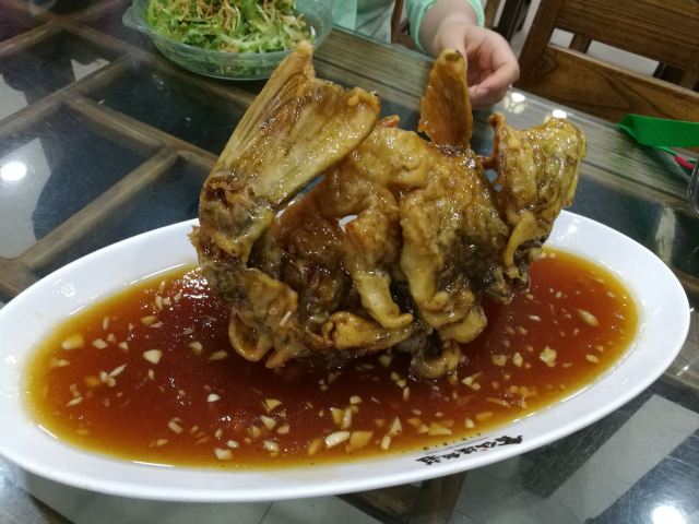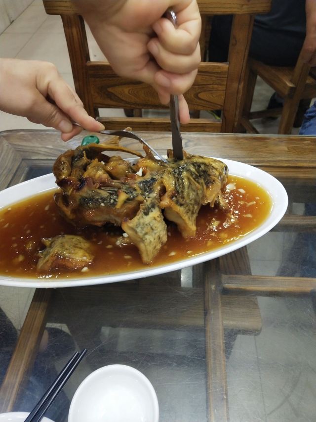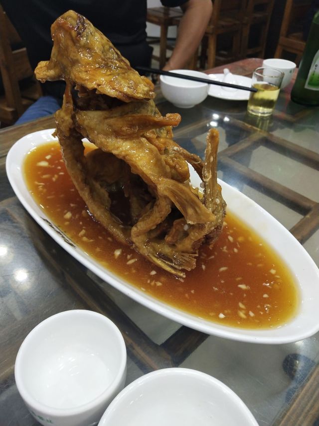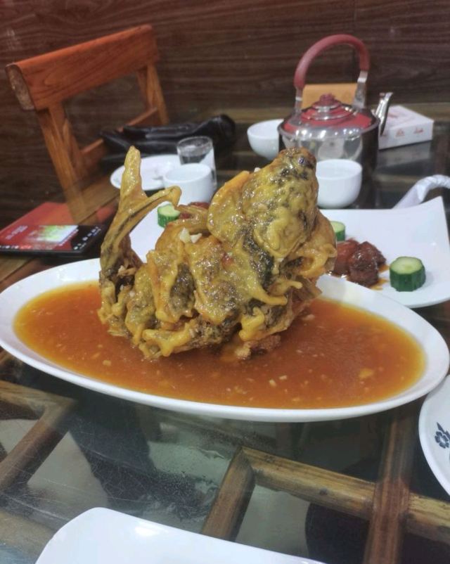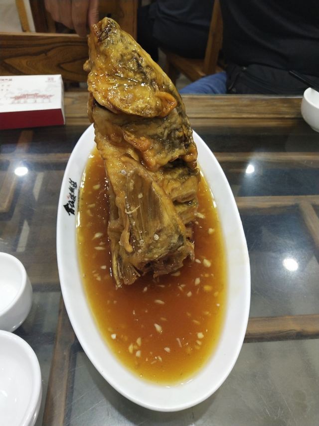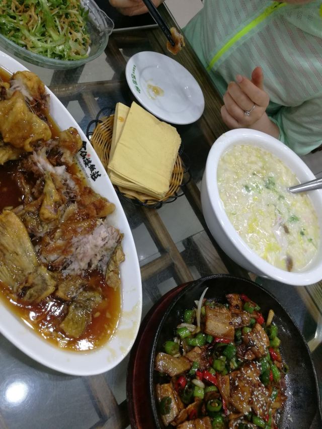 sky071、奶汤蒲菜,偏清淡口味,汤很鲜很稠,口感很适合带小孩老人出游不吃辣的 2、川渝椒香肥牛,上面是一层花椒一层牛肉,下面铺的是金针菇,鲜麻可口,适合喝酒吃饭,口感蛮正,适合湖南湖北重庆四川人口味 3、糖醋鱼,足足2.5斤,鱼裹上一层面粉炸的很香很脆,再淋上一层厚厚的糖浆,还有很浓的醋香味,很好吃,小鱼刺也炸的脆脆可以嚼碎,不用担心卡刺,鱼送上来摆盘效果很棒,然后会有服务员问你是否需要切开,如果要会拿刀叉当着你面帮你切成一块块 4、栗子白菜是汤汁咸的,白菜不进盐,很清淡 5、风味茄子是甜辣的,就是把茄子裹上糖浆面粉炸的,外面甜甜辣辣,里面茄子没有任何味道,这是点的五道菜里最不好吃的 每道菜分量蛮足,尤其是鱼有两斤多,光吃这道菜就很饱肚子了,三个人根本吃不完,服务员也不会提醒你,反正随你点,像我们外地游客又不方便打包,这样会造成食物浪费 总得而言咯,该店的位置和饭菜口感还不错,值得在那人挤人的繁荣小街里找个地,让你安安静静品尝下当地特色美食