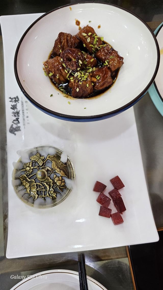 会仙楼饭庄是当地鲁菜馆,菜量大,价格实惠。糖醋鲤鱼外焦里嫩,沾着酸甜的汤汁,很可口;九转大肠口感酥软又有嚼头,酱料十足;其他菜品也很美味,口味地道纯正。
