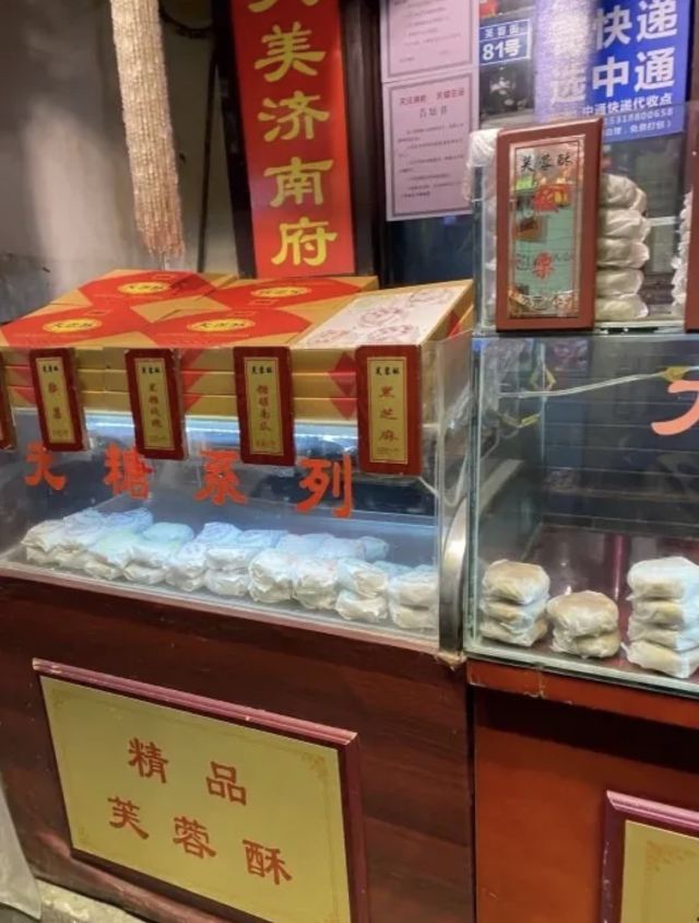 去山东旅游,这一站来到了济南,晚上来到美食一条街—-芙蓉街打卡。这一家芙蓉酥好像是总店吧,我路过的时候看到这里写的是济南名小吃,来旅游之前也看到过它的点评,本来好很想试一下它的无糖芙蓉酥,但是老板娘一点都不热情,我们过去看了一下,她一句话也没有说,非常冷淡,想想也就作罢了。