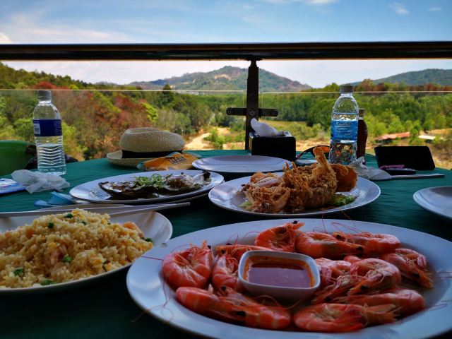 这家海鲜餐厅距市区稍远,位于山坡上,但胜在价格实惠,环境不错,面积够大。餐厅门口的大鱼缸可供食客亲自选择食材,然后加工后上桌享用,口味非常的棒。