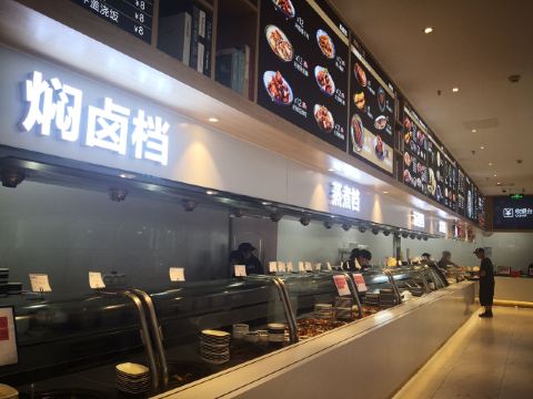 餐厅环境优雅,不是服务区常见的快餐桌椅,是正经餐厅的布置,收拾很也及时,不错不错。 中式快餐,按菜收费,不是自助餐,品种很多,卖相很好,味道尚可,价格适中。 还有很多小吃档口,炒面是自动炒锅,可以围观一下。 还有煎饼、驴肉等山东小吃,选择面广,也不贵。