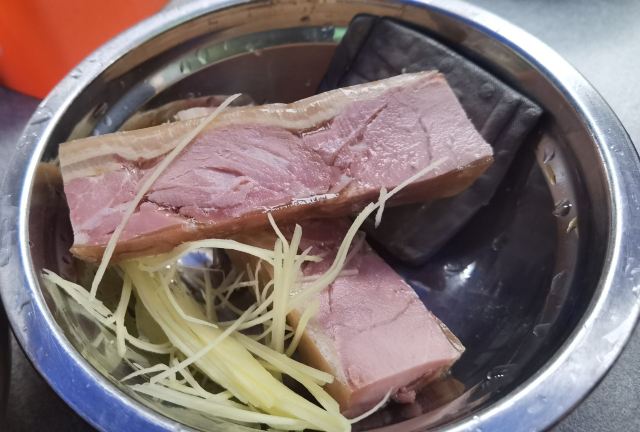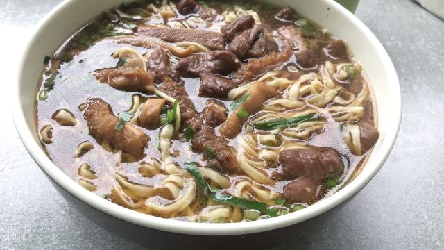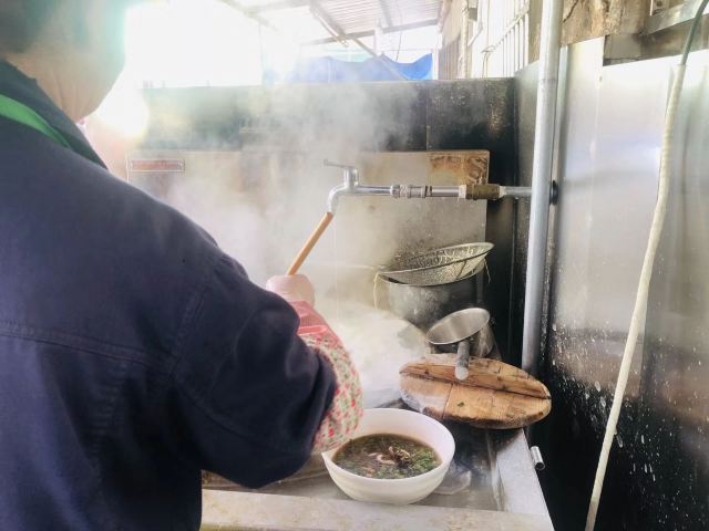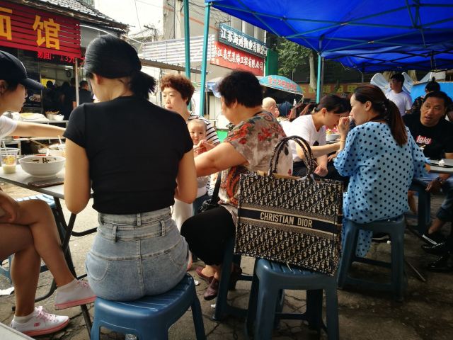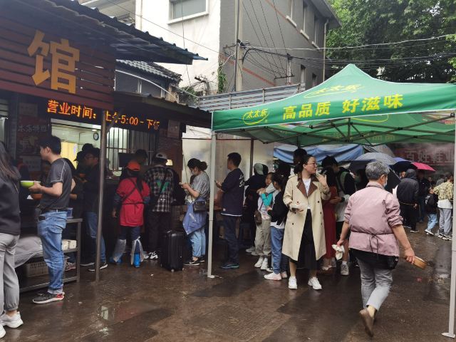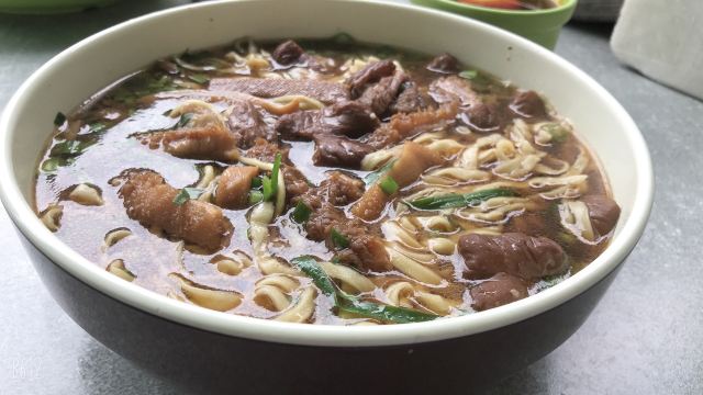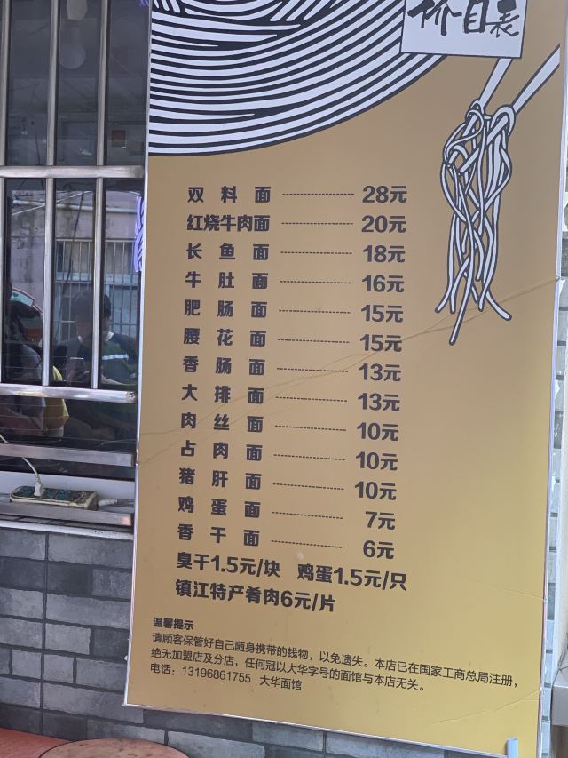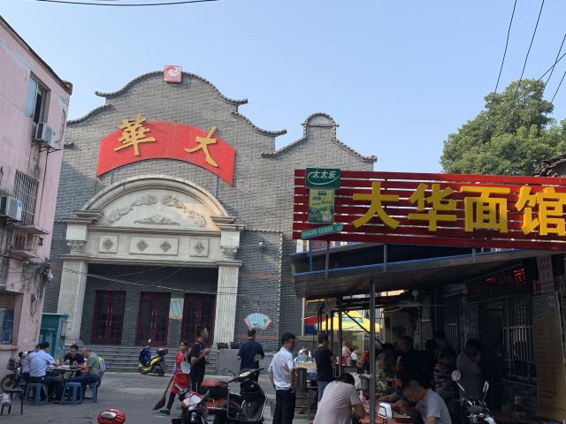 魔女锦鲤大华面馆是当地非常受欢迎的一家面馆,来的当天下着毛毛雨,依旧不减大家排队的热情。大华面馆位于大华影剧院旁,路边摊风格,都是在室外搭了几个大雨棚,摆上几张桌椅,由于位置少,等的人多,大家都是自己找位置拼桌坐。早上接近10点,在巷子里挤满了排队的人群,据说中午时分排队人会更多。首先排队点餐,付款,给一个放了底料的碗,排队拿面。双料面(自己拼,要了长鱼+腰花),面条可以选择宽面或者细面,料都挺足的,长鱼就是我们说的鳝鱼,去骨保留鱼肉,软嫩可口,腰花也刚好。汤底酱油味比较重,不是上汤。另外还点了镇江特产肴肉和臭干。肴肉咸咸的没吃出有啥特别,臭干冷的,也不够之前吃的好吃。
