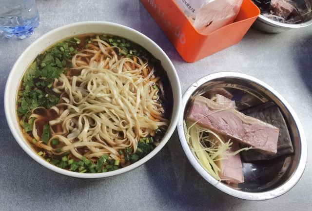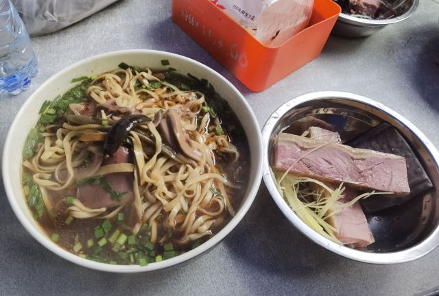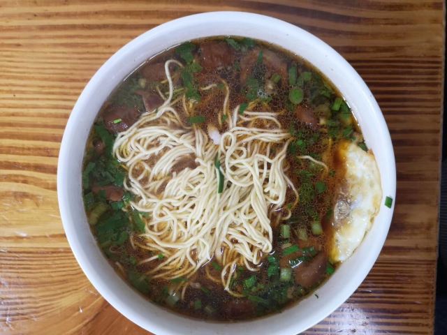 一早到镇江,就来排行第一的大华吃锅盖面,随时都是人山人海,感觉自己没有来错。面汤是典型的浓油赤酱的红色,适合我们上海人的口味。面条忘记选粗面了,不过细面也劲道十足。料很足,怪不得当地人和慕名而来的都有。