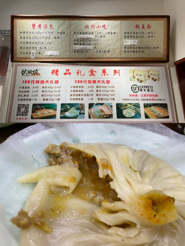 寂寞的西瓜镇江,真的是好吃又好逛的无敌宝藏城市,去再多次也不够。 燃鹅,偶尔还是会发生踩雷状况,比如这次选择的「伙头烧蟹黄汤包(大市口店)」。 🔔服务: 被“强制”入了两枚「特金奖蟹黄大汤包」,但是,点单时明明告知要一枚汤包 & 一份萝卜丝饼。 店家点错单的唯一解释就是:汤包现蒸,不能退换,并且汤包很不错,就吃吧。 近年遇到的zui无语服务南波万头衔,必须送上。 🥢 口味: 「特金奖蟹黄大汤包」 客观来说,这份强买强卖款汤包,其实真的真的hin平庸,即使没有发生点错单状况,它也并不值得专程打卡。 别说和wuli大魔都那几家蟹粉专门店比,哪怕江河日下的王家沙,蟹粉汤包的出品也要比这里好上一丢丢。 鲜香味欠奉的蟹黄汤包,真的欣赏不来。 「骨汤碎肉面」 U1S1,碎肉面的表现还不戳,至少比汤包美味一些些。只不过,30度+的天气里,坐在连空调都不舍得开的环境下嗦面,心疼自己🤣🤣 为下一次的镇江逛吃🐎一下,记得绕行8⃣️
