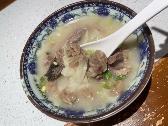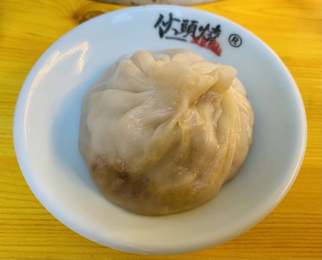 Dudelsack来八佰伴洗头,顺带拔草伙头烧,区级非物质文化遗产哟! 店面在名不见经传的居民区旁,如果不是跟着导航,根本找不到… 骨汤碎肉小馄饨,浓浓的骨头汤➕筒骨肉和鲜肉小馄饨,吼吼次!只要18~后来差头司机和我说,一般小馄饨只要10块…好的吧,比起上海的小馄饨,我觉得已经太便宜了! 骨汤碎肉面,也是18。汤还是那个汤,筒骨肉也还是那个筒骨肉,不过加了胡椒,面煮得比较生,一会就涨了满满一大碗…老爸居然吃完了… 特金奖蟹黄大汤包,现蒸,汤很鲜美,满满的肉、蟹黄、蟹肉,足足有180g,只要38! DP还可以买代金券,便宜了10块,正好打车肥酒店!