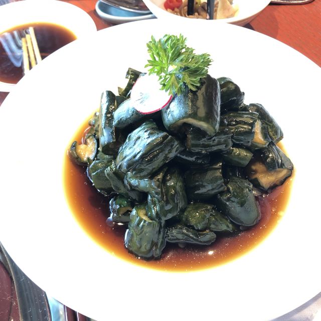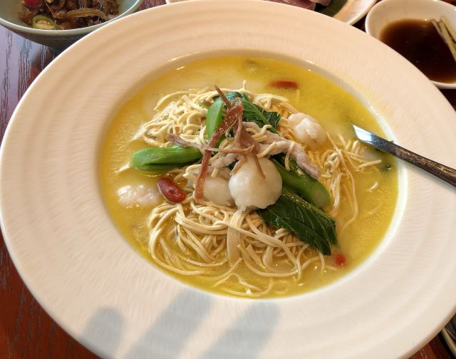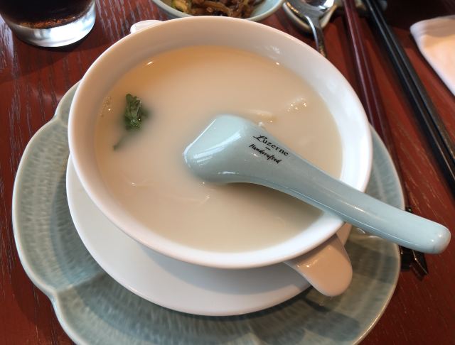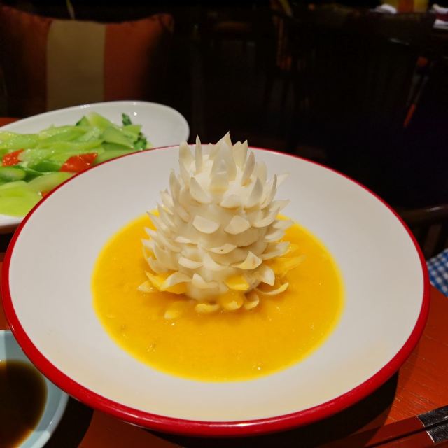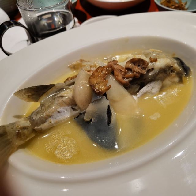 昨晚预定的当地特色一一鲃魚,怱怱赶回镇江凯悦。多年前在木渎尝了民国期于佑任盛赞的鲃肺湯,至今仍不忘其鲜美。晚上的鲃魚特嘱白汁烧,上面盖着几片薄薄的鲃魚肺,急不可耐地尝上了。肺是嫩嫩的,皮是糯糯的,汤则是稠稠的,鲜美无比,价也有所值。简简单单的窝笋竟似碧玉翡翠,最喜百香果橙汁浸百合,如宝塔如释迦,爱不忍下手。吃在口里凉凉酸酸甜甜加之百合的脆脆,快哉!