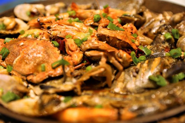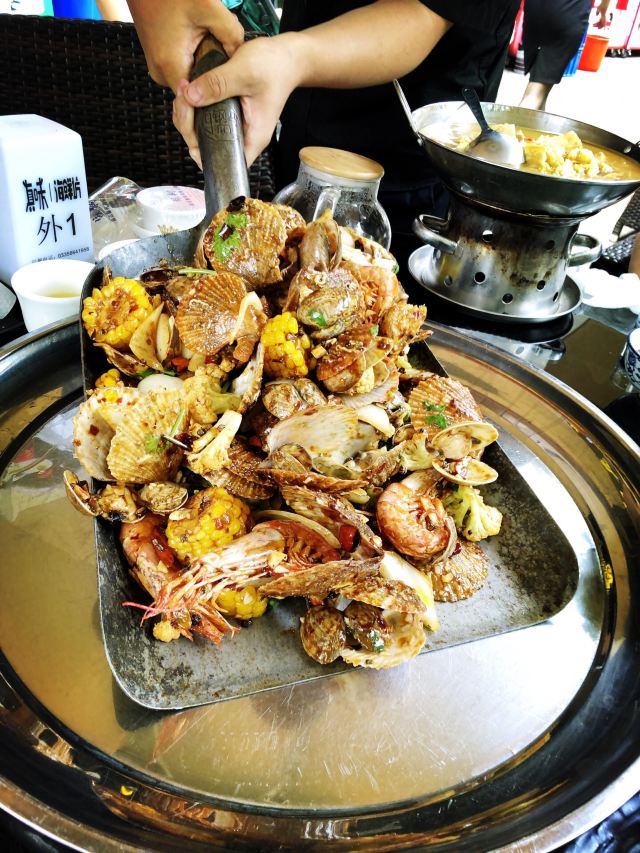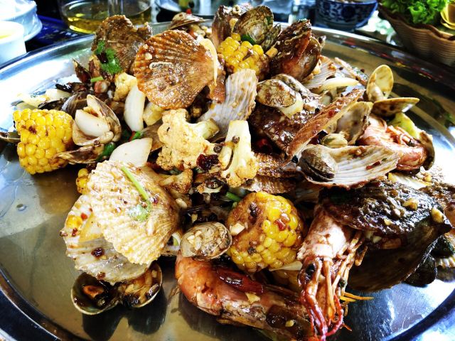 辣炒蛏子,八爪鱼炖红烧肉,椒盐皮皮虾,阿根廷红虾,鲜椒小牛肉,蒜蓉粉丝蒸秋葵,辣炒花蛤,雪菜蒸黄鱼,招牌葱烧大鲁鱼,蒜蓉粉丝蒸夏威夷贝,虾肉酱小海鲜煎蛋,葱油菜心珍珠贝,蒜蓉蒸生蚝