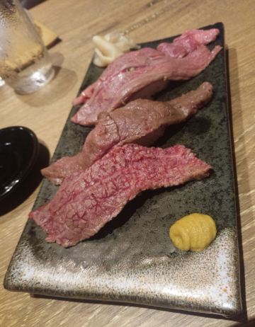 想吃拉面 黑蒜油或者地狱的都行 想吃寿司 toro或者星鳗不挑 想吃刺身 翘屁屁的牡丹虾 不然甜虾也可以 想吃冰淇淋 抹茶或者豆乳味的来两个球 还有烧鸟我要吃牛舌 鸡胗 再多要两串银杏下酒【吃了两大份三文鱼腩一碗拉面一份大拼一个手握着实有点撑 还麻烦师傅帮我把大腩火炙谢谢啦 嗝】