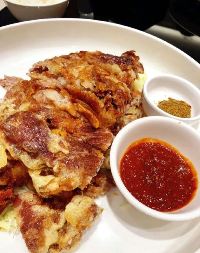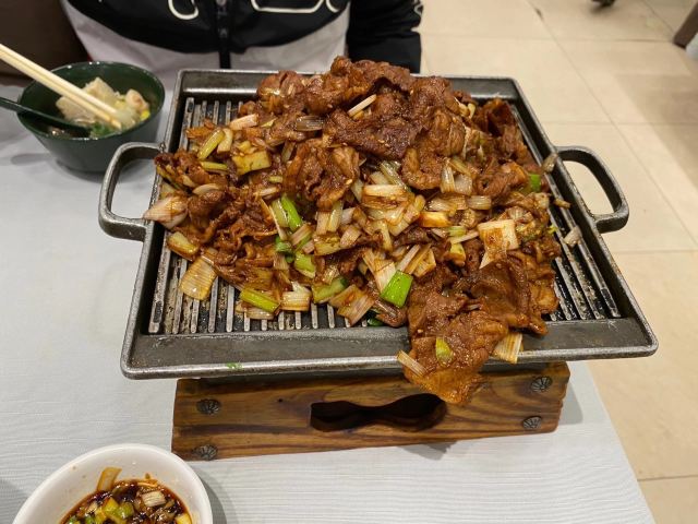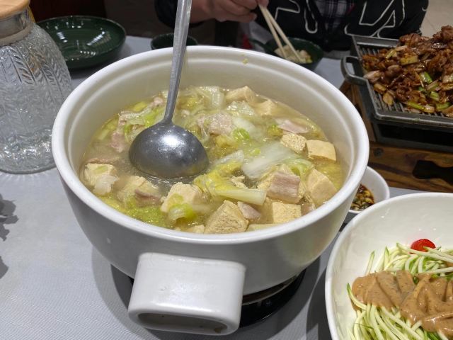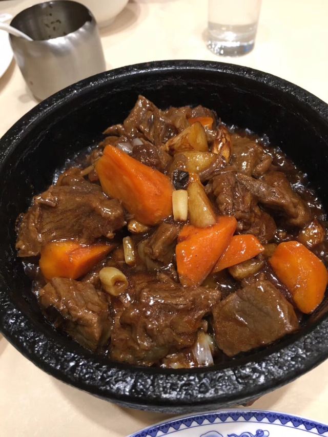 XIN QIAN LONG RESTAURANT承德新乾隆酒楼据说休息日时生意非常好,我们今天早早就到酒店了,还好没有等位。点了干煎大连带鱼,肉姑炒肉,大白菜酱肉大包子。对这个大包子印象最深,包子非常非常大对我这个上海人来说包子皮蛮松软的,就是皮很厚实,馅料有点咸。就因为包子大,皮厚实,我们四个人才吃完一个。