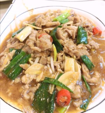 标准的福建做法,里面的葱姜很多,不过做的很好吃,那个沙茶牛肉特别赞哦,还有一个类似于沙葱的东西,吃起来很不错,是当地的韭菜。