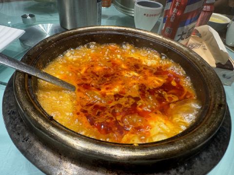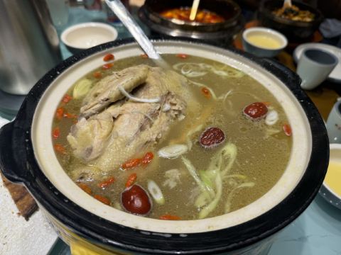 跟随东北历史研学团在敦化访古一整天,又累又饿了,领队安排了当地的朝鲜餐厅品尝特色菜。整个餐厅的内外装饰,都比较逼真地展示了朝鲜族的民族风格。各种朝鲜民族地区的特色菜都比较齐全,参鸡汤、冷面、石锅拌饭、土豆饼等,品种丰富,要味道有味道,要吃饱能吃饱,非常到位。上菜的速度比较理想,最重要的还有价格公道,性价比超高。在延边朝鲜族自治州,敦化市算是汉族人口比例最高的城市了,能找到这样的特色餐厅也是非常不容易的,领队很出色。