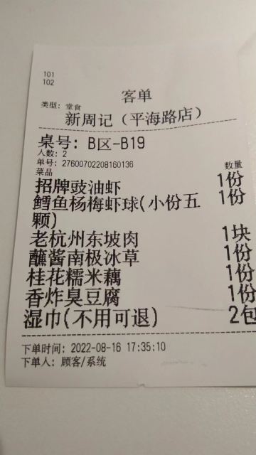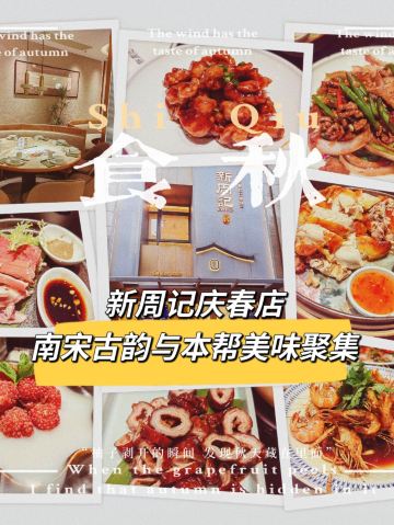 平安夜的蚊子新周记庆春店,地址庆菱路116号。 🚗交通 地铁二号线庆菱路A1出口 🏖️环境布置 老友聚会,推荐了这家新周记,预订了12人包厢,早早就来了。双菱路车马喧嚣,走进新周记,立马安静下来。新中式风格,清新的绿色调跳跃着,在简约与古典中跳跃着,撞出不一样的视觉体验。环境洋溢着南宋古韵,让人倍感高雅舒适。 新周记,南宋古韵与本帮美味荟聚。 💁服务态度 服务态度很好,上菜也很快,对小朋友也很耐心。 🍜美食推荐 |鳕鱼杨梅球^仙气飘飘,“杨梅”咬下去,是满满酥脆,鳕鱼鲜美Q弹 |招牌豉油虾^大虾个头饱满,豉油把虾的美味发挥极致。 |米兰虾饼^油炸大虾饼,一口就饱了 |香茅手撕脆皮鸡^脆皮鲜美多汁,鸡肉细嫩 |羊肉^红皮羊肉,一点不腥,口感柔滑 |脆皮大肠^酱香浓郁,一口酥脆不肥腻。 |周记卤鸭^鲜香甜蜜,老杭州必吃。 |招牌红烧鱼头^红烧汁水香甜,鱼头很嫩。 |糖醋里脊^酸酸甜甜,外脆里嫩 |肉汁荔浦芋头^肉汁的香气融入芋头里,味道好极了。 |XO酱状元萝卜糕^松软酥脆 |干炸臭豆腐^蘸着酱料,太香了 |脆皮黄瓜卷^|酱香脆萝卜^经典凉菜清爽解腻 📌贴心TIPS 营业时间:10:30-14:30 16:30-21:00 人均消费:93元 新周记,南宋古韵与本帮美味荟聚。