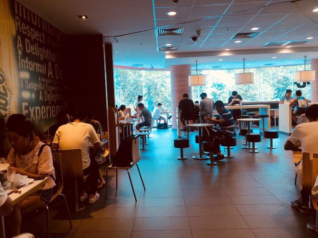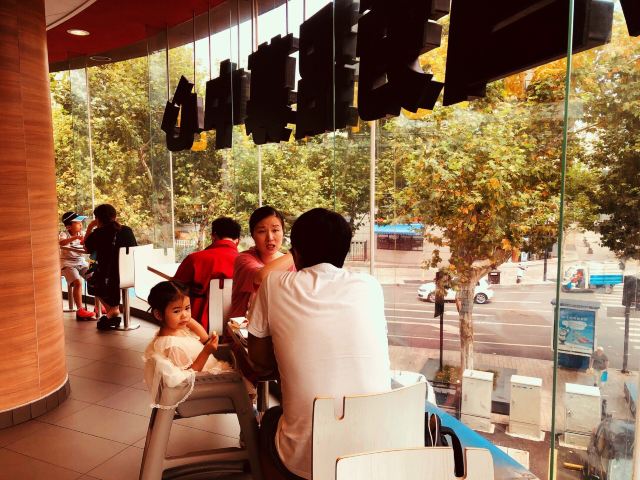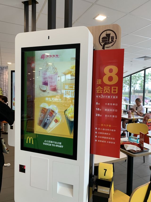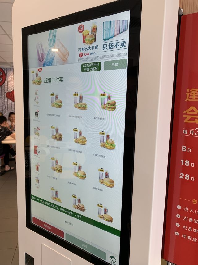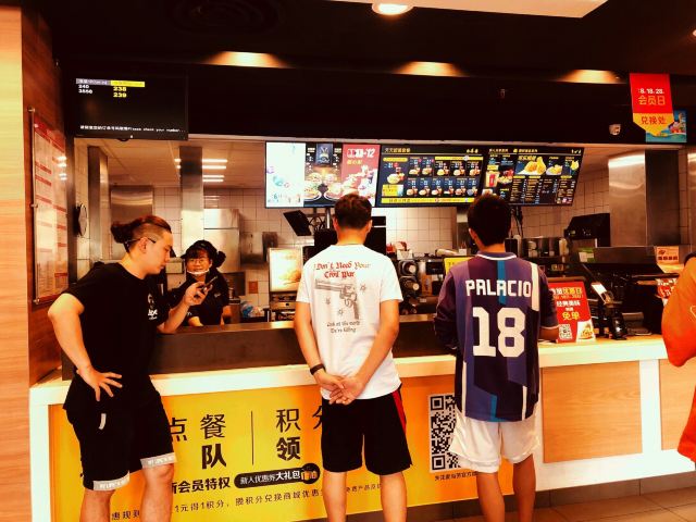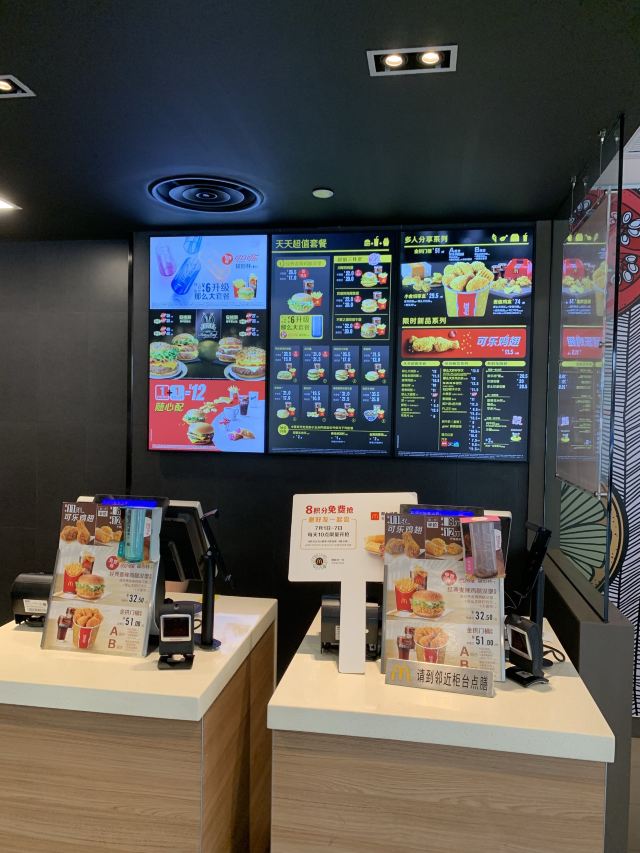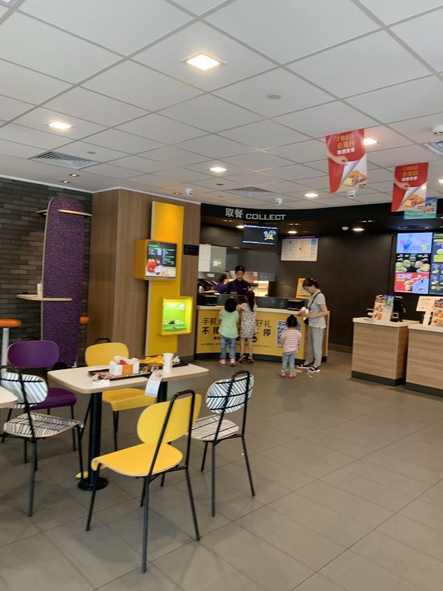 这家麦当劳的位置很好找,交通方便,可以通过店内的点餐设备点餐,也可以通过手机APP点单,简单方便,汉堡,薯条,炸鸡是必不可少的。