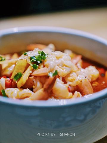 🍓 未未草莓🍓🐟去过一次滨江店,吃了砂锅鱼头简直一发不可收拾,难忘那美妙的滋味,这一次又去了转塘店打卡,真爱了。 🐟店名:乐享食光(西湖区宋城店) 📍地址:杭州转塘路象山国际艺术象山大厦364号,导航有点不太准,是在沿街的路上。 🚗交通攻略:店家自己有停车场,附近路边停车的地方也比较多。 🔸推荐菜品🔸 🐟钱塘砂锅鱼💰98 还没开起锅盖,打一圈酒精,开锅之前点燃酒精,让鱼头在火焰🔥中翻滚,香气四溢,这时候就迫不及待要去尝鲜。极嫩鱼肉汇鸡爪和土豆,各种鲜香都已入味。鱼头刺本不多,所以大快朵颐也不在话下,到店必尝的菜,不能错过。可以选做辣和不辣的口味。 🍤五味虾💰48 果然有甜,有辣,有酸,所以这道菜不能去辣。剝好的虾球,一口一个虾球,已经很方便食用。不爱剝虾君之福利。酸酸甜甜的口感,再加上点辣也真是够开胃,也能下饭。汤汁有点油,也有点烫口,吃的时候别太心急了。 🌿餐厅环境:转塘店在二楼,晚上的楼梯用霓虹灯装饰,就像一个时空隧道,太耀眼了。餐饮有多人座,也有包厢适合全家来一起吃的餐厅。 👏餐厅服务:转塘人民也很热情啊,各项服务我看都挺到位。初来乍到,我问东问西,店长也一一为我解答,赞哦! 🌈餐厅特色:钱塘人家杭邦特色菜,砂锅鱼头必点推荐,卤鸭,五味虾都是推荐菜。总体口味受大家欢迎,口碑不错 价格也适中。 💰人均消费:75