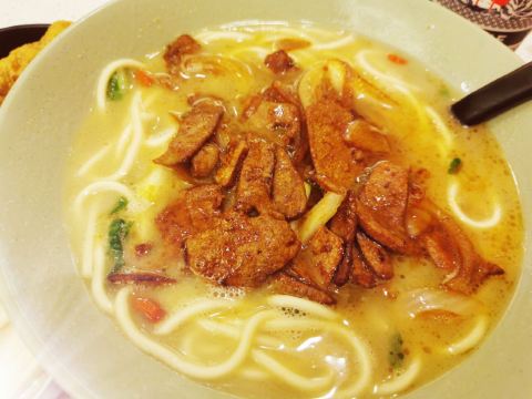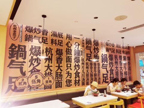 八角面馆,地址国大城市广场B2层 🚗交通 地铁一号线武林广场 🏖️环境布置 八角面馆,最近似乎很火爆。其实这家店,始创于1983年,至今近40年历史了。国大城市广场的分店,就在霸王茶姬旁,火爆程度,不下于网红奶茶店。半开放式环境,温暖的原木色调,一面墙大写着菜单。在老底子复古的情怀中,体现现代精致时尚风格。老字号面馆,也在与时俱进。 💁服务态度 八角面馆最大的特点,我认为就是可以像火锅店那般,随心自助调料小菜。布置精心的调料台,光辣酱就有5种。花椒油、米醋、|醋萝卜^油渣、生菜等,林林总总十几样。吃面口味随心配,给你最大的口味自由。拉开餐桌的抽屉,餐具自助,干净卫生。 🍜美食推荐 |爆香猪肝汤面^面条满满一大碗,面条圆润有劲道,汤底鲜美有枸杞。现炒猪肝滑嫩,只是口味有点苦,幸好调料随心配,吃得饱饱哒。 |豆皮^打卡赠送。有小女生手掌一般大,酱香多汁。 |醋萝卜^不限量自助,脆甜爽口,好吃停不下来。 📌贴心TIPS 营业时间:10:00-22:00 人均消费:25元 八角面馆,吃面口味随心配。