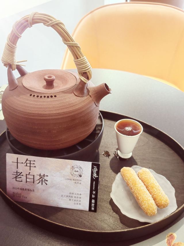 周四晚,地址学士路57号。 🚗交通 地铁一号线龙翔桥B出口 🏖️环境布置 周四晚,西子湖畔的新中式茶馆,并非奶茶店。 两层楼面积,宽敞明亮。原木色格调,时尚大气,也古色古香。灯光柔和,国风雅致。在现代设计里,融入诗情画意。 💁服务态度 服务态度很好,但是|十年老白茶^实在等的太难。十点开业进门,说老白茶要等到十一点。出门转了一圈,十一点多进门,说再等15分钟。其实足足又等了近半小时才喝到。虽然|十年老白茶^秒杀仅仅18元,但付出的时间成本实在太高。 如果实在闲的没事,过来坐坐打发时光,慢慢等也无所谓。可是年轻人毕竟都忙,特别是旅游旺季,一等就耽误了后面的行程。 🍜美食推荐 |十年老白茶^造型独特,茶香浓厚,配有|京果^。但是等太久了,茶刚出炉也很烫,来不及坐太久,喝了一点点,就打包走了。 📌贴心TIPS 营业时间:10:00-22:30 人均消费:36元 周四晚,老白茶等得太难。