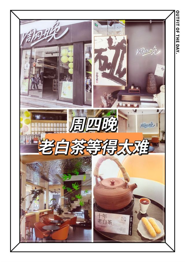 平安夜的蚊子周四晚,地址学士路57号。 🚗交通 地铁一号线龙翔桥B出口 🏖️环境布置 周四晚,西子湖畔的新中式茶馆,并非奶茶店。 两层楼面积,宽敞明亮。原木色格调,时尚大气,也古色古香。灯光柔和,国风雅致。在现代设计里,融入诗情画意。 💁服务态度 服务态度很好,但是|十年老白茶^实在等的太难。十点开业进门,说老白茶要等到十一点。出门转了一圈,十一点多进门,说再等15分钟。其实足足又等了近半小时才喝到。虽然|十年老白茶^秒杀仅仅18元,但付出的时间成本实在太高。 如果实在闲的没事,过来坐坐打发时光,慢慢等也无所谓。可是年轻人毕竟都忙,特别是旅游旺季,一等就耽误了后面的行程。 🍜美食推荐 |十年老白茶^造型独特,茶香浓厚,配有|京果^。但是等太久了,茶刚出炉也很烫,来不及坐太久,喝了一点点,就打包走了。 📌贴心TIPS 营业时间:10:00-22:30 人均消费:36元 周四晚,老白茶等得太难。