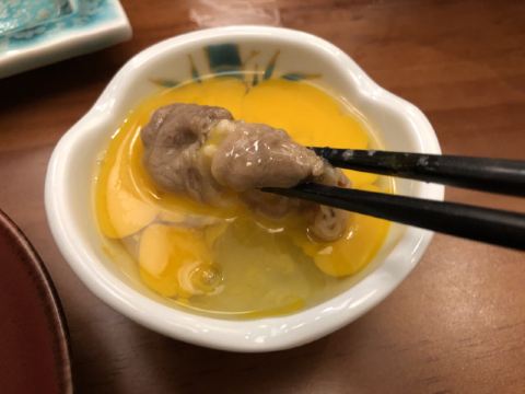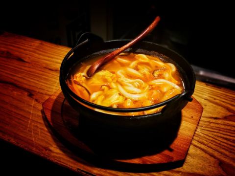 Huangshizhi·shaoniaojujiuwu (zhongshanbeilu)皇室炙面积不大,播放着好听的日语歌,很像多年前去日本时偶遇的居酒屋,可以安安静静的吃烧鸟,喝清酒,聊天和发呆。 海盐京葱鸡腿串,鸡腿肉切块腌制,跟京葱一起烤,去除了鸡肉的腥味,一串不过瘾。酱烤和牛肋条,味道更浓郁一些。 胡麻豆腐,鱿鱼片放了好多,用勺子一挖,厚厚的酱汁,鱿鱼干和豆腐融合在一起,出乎意料的美味。 澳洲雪花牛肉寿喜锅,牛肉卷,金针菇,香菇,豆腐,茼蒿和生菜,满满一大锅,牛肉卷蘸着鸡蛋液吃真是绝配,料吃的差不多了,再把乌冬面放进去煮,吃面喝汤,浑身都暖和了。