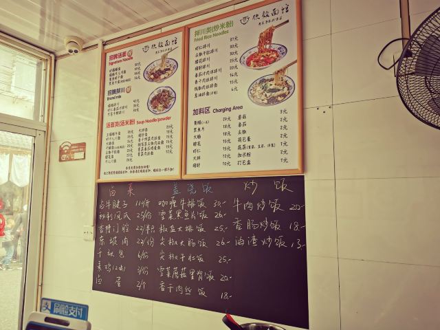 爆鳝面,片儿川面,黄鱼虾干面,光头拌川,红烧牛腱面疙瘩,倒笃菜尖椒笋干肉丝面,片儿川汤米线,三鲜面,咖喱土豆鸡丁盖浇饭,虾爆鳝,香干肉丝拌川,猪肝面,猪肝拌川,番茄汁肉沫拌川,爆鳝拌川,荷包蛋,红烧牛腱面,拌川
